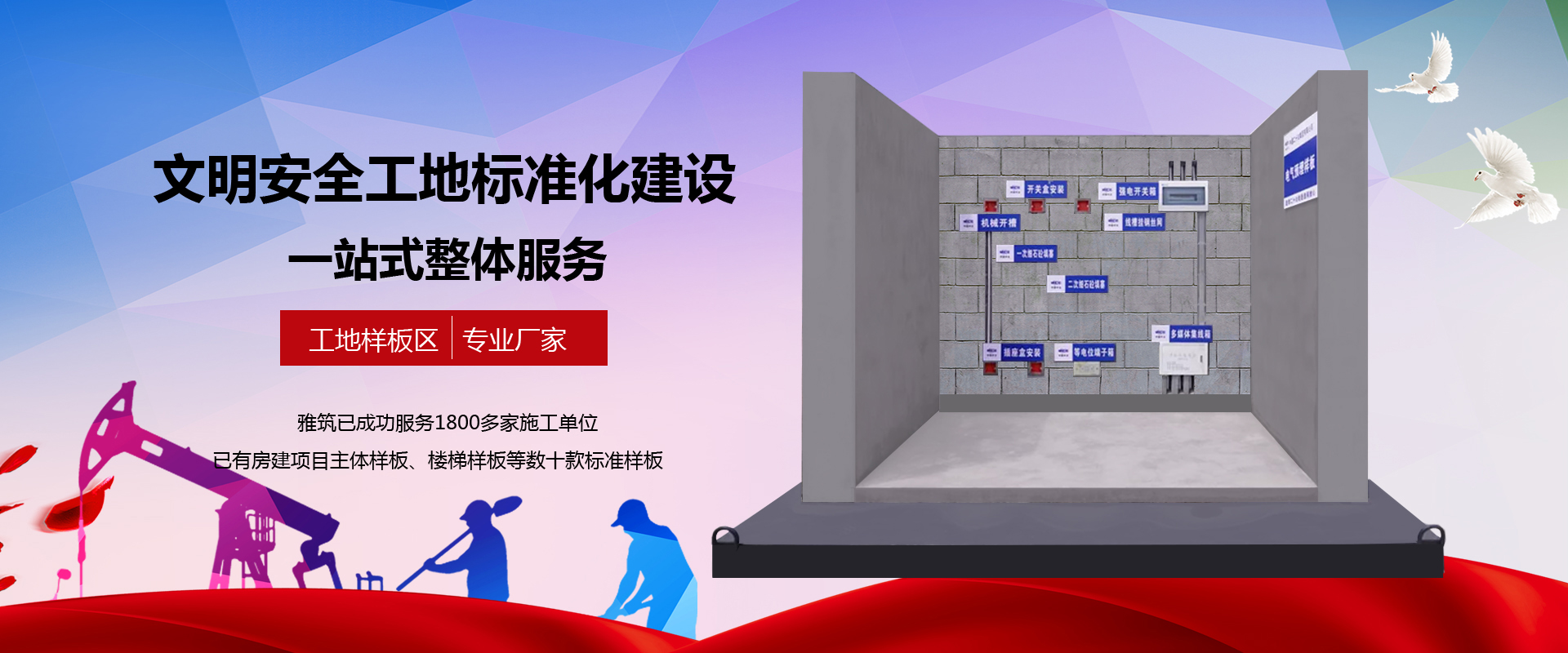 江蘇雅筑建設(shè)科技有限公司一直致力為客戶專業(yè)打造3A、省優(yōu)、魯班獎(jiǎng)等文明工地,專業(yè)提供策劃設(shè)計(jì)、產(chǎn)品制造、現(xiàn)場施工一站式解決方案等服務(wù)。